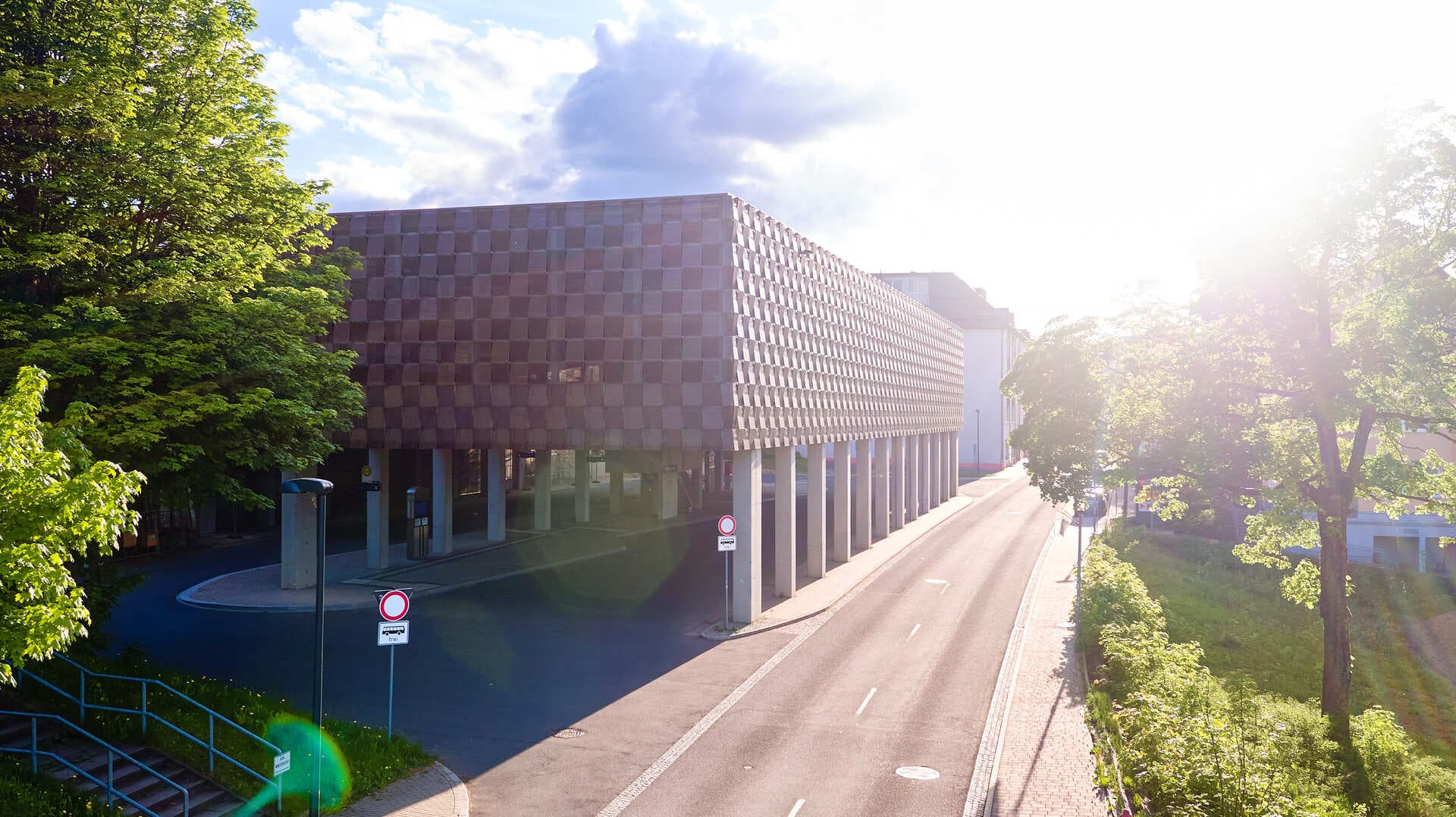 Die Lastabtragung aus den Parkebenen erfolgt über den massiven Unterbau in Stahlbetonbauweise aus Stützen und Riegeln.