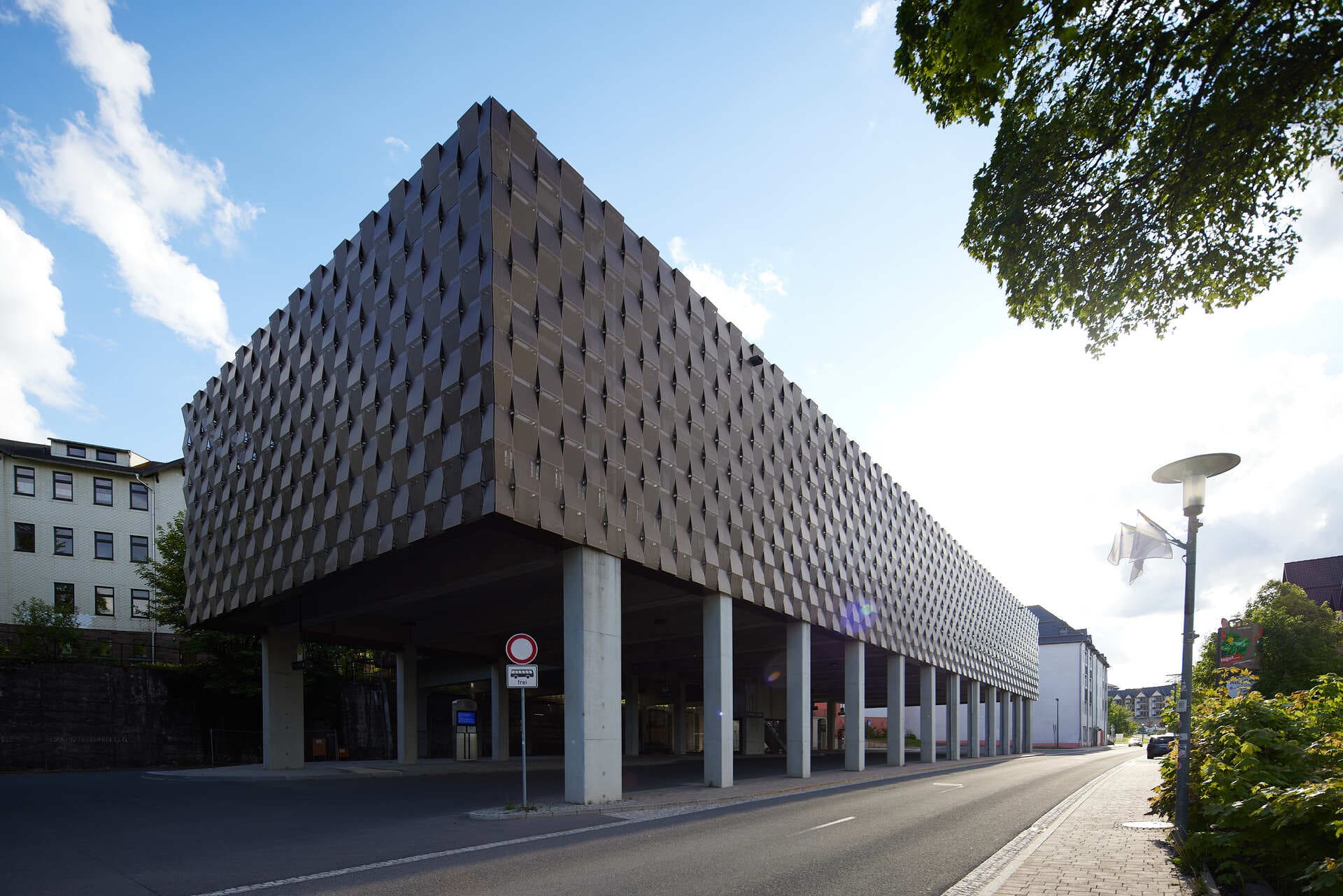 Das Parkhaus erhält 4 Parkebenen und ein Dach zur Begrenzung der Lärmbelästigung für die umliegende Bebauung.