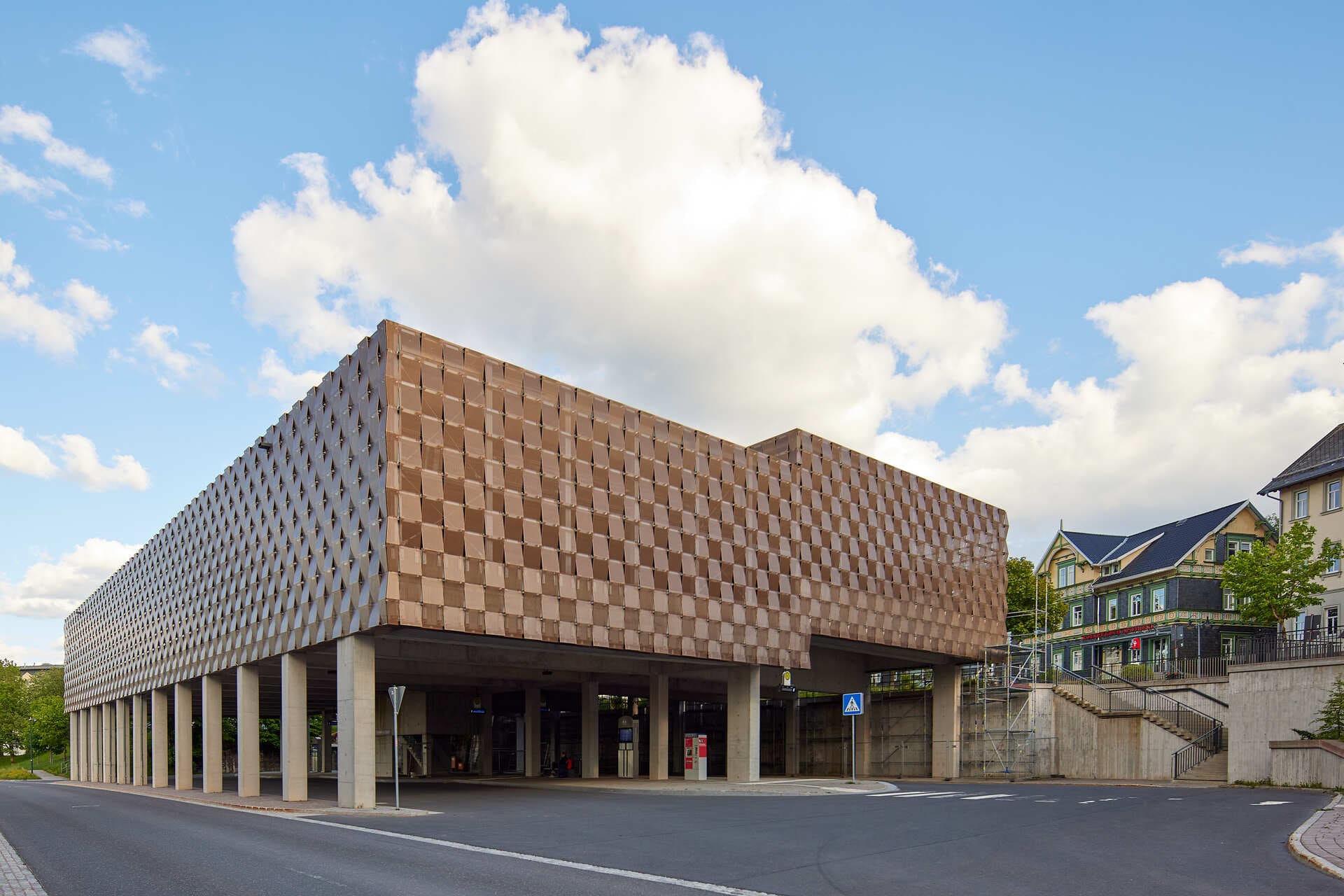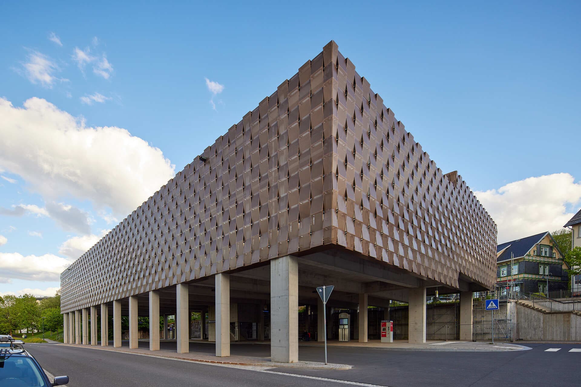 Neubau eines Busbahnhofes als Massives Untergeschoss mit überlagertem Parkhaus in Stahlbauweise.